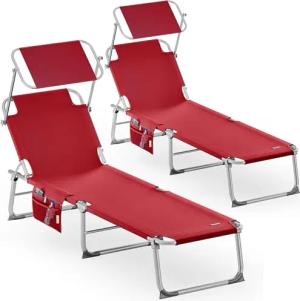 2er Set Sonnenliege Klappbar Wetterfest Gartenliege Mit Dach Seitentasche 150kg Belastbar Alu Liegestuhl Leicht Relaxliege Strand Pool Rot