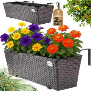 Blumenkasten 2er Set 11 Liter Montagehalterung Indoor Outdoor Geländerkasten Balkonkasten Pflanzkasten schwarz