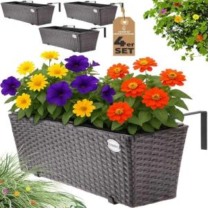 Blumenkasten 4er Set 11 Liter Montagehalterung Indoor Outdoor Geländerkasten Balkonkasten Pflanzkasten braun