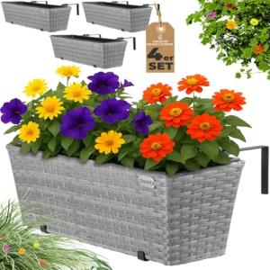 Blumenkasten 4er Set 11 Liter Montagehalterung Indoor Outdoor Geländerkasten Balkonkasten Pflanzkasten grau