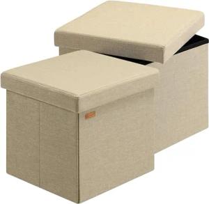 Hocker mit Stauraum 2er Set Beige Faltbar Deckel Leinen- Optik Gepolstert 38x38cm Schlafzimmer Wohnzimmer Flur Sitzhocker Fußhocker Polsterhocker