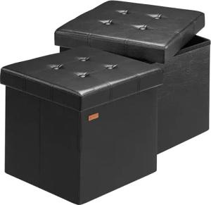 Hocker mit Stauraum 2er Set Schwarz Faltbar Deckel Kunstleder Gepolstert 38x38cm Schlafzimmer Wohnzimmer Flur Sitzhocker Fußhocker Polsterhocker
