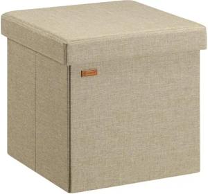 Hocker mit Stauraum Beige Faltbar Deckel Leinen Optik Gepolstert 38x38cm Klein Schlafzimmer Wohnzimmer Flur Sitzhocker Fußhocker Polsterhocker