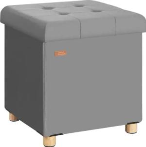 Hocker mit Stauraum Samt Grau Faltbar inkl. Füßen 38x38cm 300kg Belastbarkeit Wohnzimmer Schlafzimmer Flur Sitzhocker Fußhocker Polsterhocker