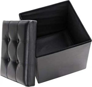 Hocker mit Stauraum Schwarz Faltbar Deckel Kunstleder Gepolstert 38x38cm Klein Schlafzimmer Wohnzimmer Flur Sitzhocker Fußhocker Polsterhocker