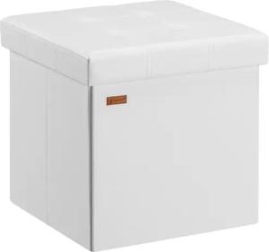 Hocker mit Stauraum Weiß Faltbar Deckel Kunstleder Gepolstert 38x38cm Klein Schlafzimmer Wohnzimmer Flur Sitzhocker Fußhocker Polsterhocker