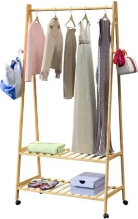 Kleiderständer Bambus mit Rollen 155x70x45cm