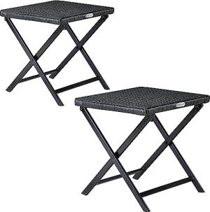 Polyrattan 2er Set Klapphocker 75kg Belastbarkeit 44x40x44cm Klappbar Leicht Tragbar Wetterfest Garten Terrasse Balkon Camping Hocker Stuhl Tisch