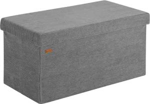 Sitzbank mit Stauraum Grau Cord Faltbar Sitzbank 300kg Belastbar 76x38cm Truhe für Wohnzimmer Schlafzimmer Flur Diele Truhenbank Bank