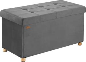 Sitzbank mit Stauraum Anthrazit Samt mit Holzfüßen Faltbar Sitzbank 300kg Belastbar 76cm Truhe Wohnzimmer Schlafzimmer Flur Truhenbank Bank