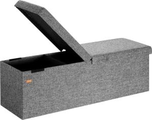 Sitzbank mit Stauraum, Grau - Faltbar, 115 x 40 x 40 cm, 130L Volumen, bis 300 kg belastbar, gepolstert, Leinen-Optik - Aufbewahrungsbox mit Deckel, Sitztruhe mit Stauraum, Polsterbank