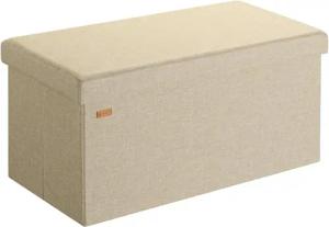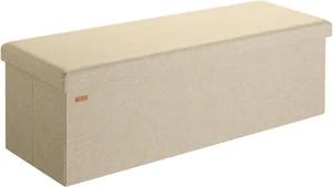Sitzbank mit Stauraum, Beige - Faltbar, 115 x 40 x 40 cm, 130L Volumen, bis 300 kg belastbar, gepolstert, Leinen-Optik - Aufbewahrungsbox mit Deckel, Sitztruhe mit Stauraum, Polsterbank