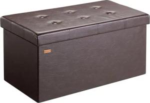 Sitzbank mit Stauraum Faltbar Braun 80x40x40cm Gepolstert Deckel Kunstleder Schlafzimmer Wohnzimmer Flur Sitztruhe Truhenbank Polsterbank