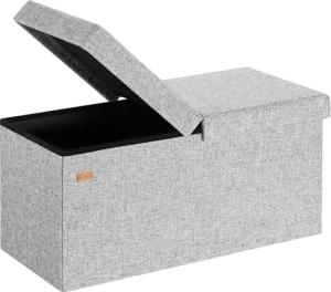 Sitzbank mit Stauraum Faltbar Grau 80x40x40cm Gepolstert Deckel Leinen - Optik Schlafzimmer Wohnzimmer Flur Sitztruhe Truhenbank Polsterbank