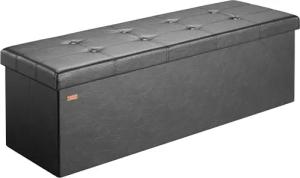 Sitzbank mit Stauraum Faltbar Schwarz 115x40x40cm Gepolstert Deckel Kunstleder Schlafzimmer Wohnzimmer Flur Sitztruhe Truhenbank Polsterbank