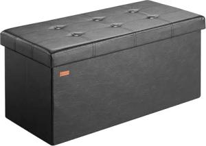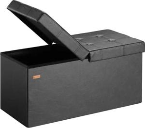 Sitzbank mit Stauraum Faltbar Schwarz 80x40x40cm Gepolstert Deckel Kunstleder Schlafzimmer Wohnzimmer Flur Sitztruhe Truhenbank Polsterbank
