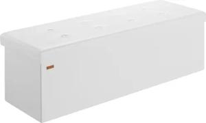 Sitzbank mit Stauraum, Weiß - Faltbar, 115 x 40 x 40 cm, 130L Volumen, bis 300 kg belastbar, gepolstert, Leinen-Optik - Aufbewahrungsbox mit Deckel, Sitztruhe mit Stauraum, Polsterbank