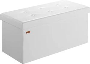 Sitzbank mit Stauraum Faltbar Weiß 115x40x40cm Gepolstert Deckel Kunstleder Schlafzimmer Wohnzimmer Flur Sitztruhe Truhenbank Polsterbank