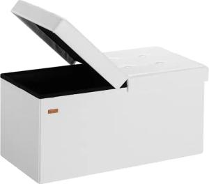 Sitzbank mit Stauraum Faltbar Weiß 80x40x40cm Gepolstert Deckel Kunstleder Schlafzimmer Wohnzimmer Flur Sitztruhe Truhenbank Polsterbank