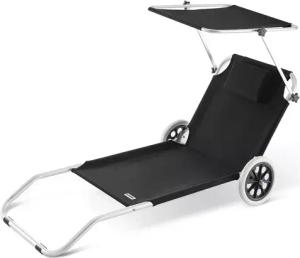 Sonnenliege Klappbar mit Dach Strandliege mit Rollen Tasche Outdoor Klappliege Liegestuhl Abnehmbarer Sonnenschutz Liegestuhl 115kg Anthrazit