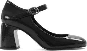 Damen Mary Jane Pumps aus schwarzem Lackleder mit Blockabsatz und Riemen (752-31700)