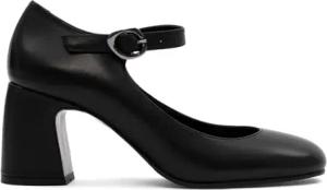 Damen Mary Jane Pumps aus schwarzem Leder mit Blockabsatz und Riemen (752-31700)