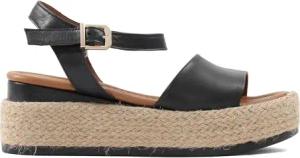 Damen Sandalen Sommer elegant – Geflochtene Keilsandalen mit Bastsohle, offene Zehen, verstellbarer Riemen, luftige Sommerschuhe aus Leder in Schwarz