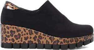 Damen Slip On Plateau Sneaker mit Keilabsatz – Elegante Damenschuhe für Frühling & Sommer , leichte Freizeitschuhe mit Absatz , atmungsaktive Keilsneaker & Wedges, in Schwarz mit braunem Leo Muster