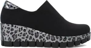 Damen Slip On Plateau Sneaker mit Keilabsatz – Elegante Damenschuhe für Frühling & Sommer , leichte Freizeitschuhe mit Absatz , atmungsaktive Keilsneaker & Wedges, in Schwarz mit grauem Leo Muster