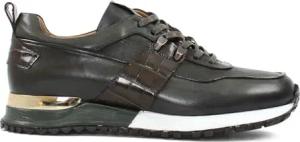 Herren Leder Sneaker mit Kroko-Details & Metallic-Ferse – Grün (406-4424)