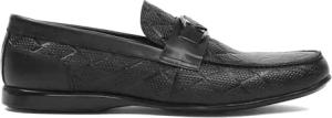 Herren Slipper aus schwarzem Leder mit Struktur und Zierschnalle (639-259)