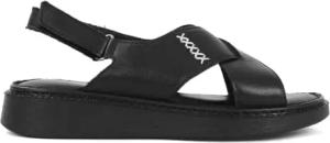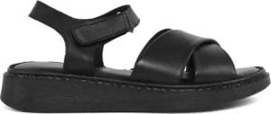 Leder Sandalen Damen Sommer – Bequeme Sommerschuhe mit Klettverschluss, Kreuzriemen und Ziernaht, weiche Plateausohle für Alltag in Schwarz