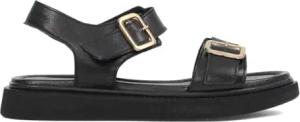 Leder Sandalen Damen Sommer – Bequeme Sommerschuhe mit verstellbaren Doppelriemen, flache Plateausohle, stilvolle Alltagssandalen in Schwarz