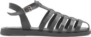 Riemchensandalen Damen – Bequeme Sommerschuhe mit geflochtenem Riemen, flache Sommer Sandalen aus Echtleder für Alltag, Urlaub und Freizeit in Schwarz
