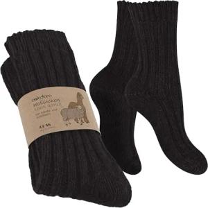Damen Herren Wollsocken mit Alpakawolle - 2 Paar Schwarz 43-46