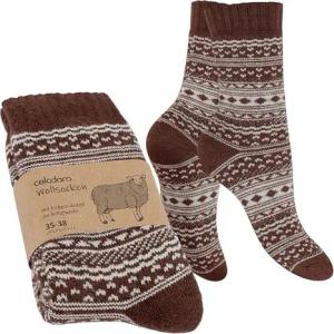 Damen & Herren Frottee-Wollsocken mit Muster (1 Paar) - Braun mit Creme 35-38