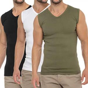 Herren Business Muskelshirt V-Neck (3er Pack) Feinripp Top - Olive Weiß Schwarz XL