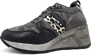 Damen-Sneaker C-1401 Elastische Schnürsenkel, Wildleder Metall Stahl, 36 EU