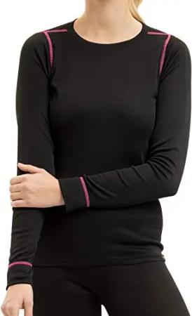 Damen Ski- & Thermo Hemd - warme Unterwäsche Langarm POLARDRY - Schwarz-Pink XL