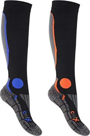 Damen und Herren Ski- und Snowboard Socken (1 Paar) Kniestrümpfe - Schwarz-Orange 39-42