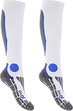 Herren & Damen Running Kompressions Strümpfe (2 Paar), Sport Kniestrümpfe - Weiss-Blau 39-42
