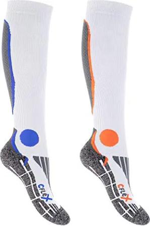 Herren & Damen Sport Strümpfe (2 Paar) Kompressions Kniestrümpfe - Weiss-Grau 39-42