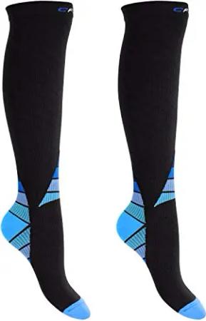Herren & Damen Sport Strümpfe (2 Paar) Kompressions Kniestrümpfe - Schwarz-Blau 39-42