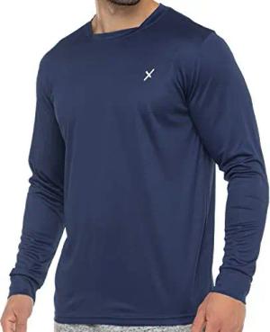 Herren Fitness Shirt Langarm, Sporthemd Longsleeve, Quickdry Piqué - Navy S