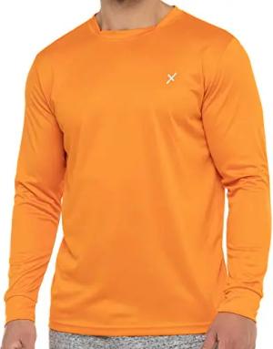 Herren Fitness Shirt Langarm, Sporthemd Longsleeve, Quickdry Piqué - Orange S