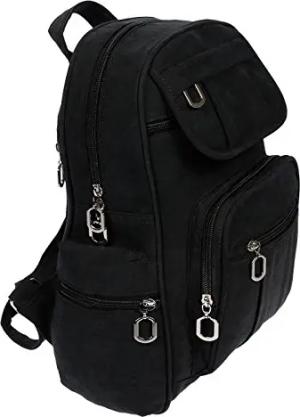 Damen Rucksack aus Canvas - Elegant und Modern, 24x30x13 cm - Mittelgroßes Daypack mit 7 Fächern, Stilvoller City Rucksack für Frauen - Alltagstauglich und Vielseitig - Schwarz