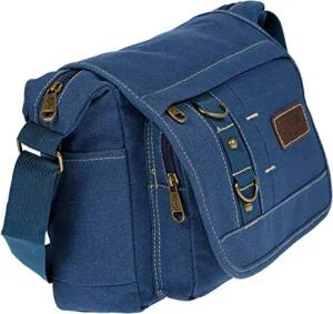 große XL Herren Damen Tasche Umhängetasche Canvas Messenger Bag Blau