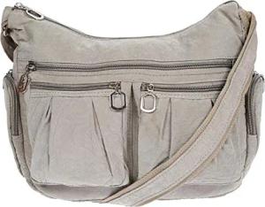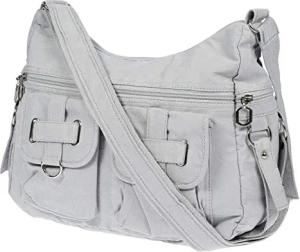 große Damen Tasche Umhängetasche Beuteltasche Handtasche Crossover Leder Optik Grau
