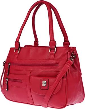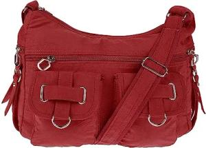 Große Canvas Umhängetasche Damen - Stofftasche mit Reißverschluss - 32x26x13 cm - Verstellbarer Trageriemen bis 135 cm - Mehrere Fächer, Rot - Luxuriöse Schultertasche