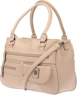 große Damen Umhängetasche Tasche Schultertasche in Leder Optik Beige-Dunkel